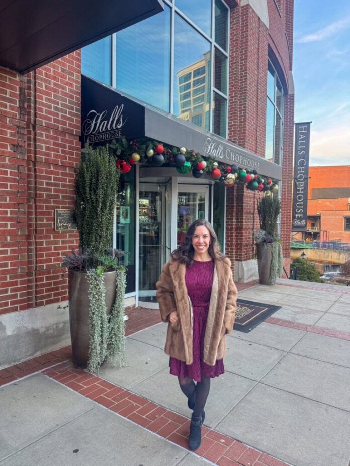 I’ve a listing of eating places on my “wish to strive” listing in Greenville, and David and I checked an awesome one on Wednesday. We made early reservations at Corridor’s Chophouse, a famend steakhouse proper close to the river downtown with a frontage of so many home windows that confirmed off their festive vacation decor.