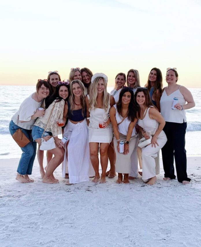 The home was huge and delightful, walkable to the seaside, breakfast and a few native outlets, and excellent for a gaggle of 13 who knew we’d be spending a good period of time sipping drinks poolside and chatting away all weekend. (Every bed room had its personal lavatory which was additionally tremendous useful! That is the precise home we rented in case you’ve a big group who is perhaps .) All of us claimed rooms and hugged Ashley’s household hey earlier than making cocktails to deliver out to the seaside for the sundown.