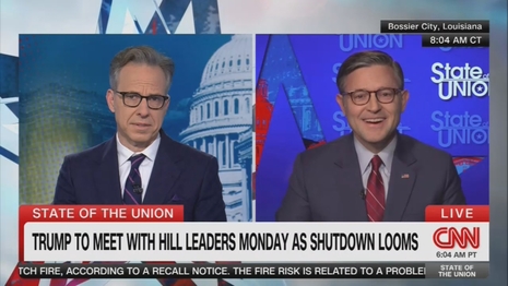 Discussing the approaching assembly between Trump and Chuck Schumer to debate the looming authorities shutdown, Tapper, making a Godfather II analogy, requested Speaker Mike Johnson: