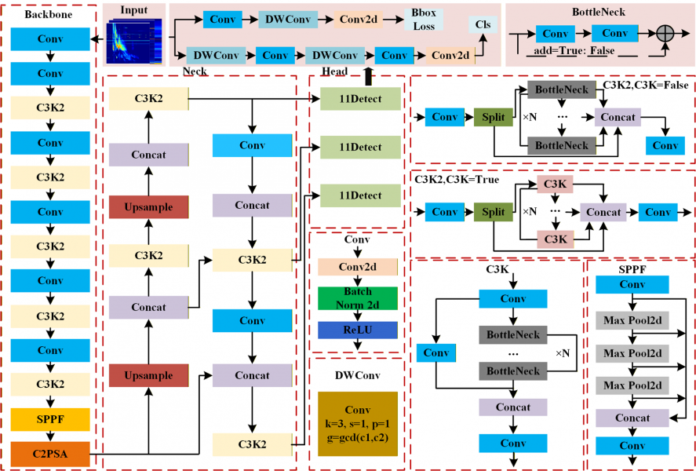 This research constructs a public dataset based mostly on Learmonth Observatory in Australia and the meter-wavelength observing system of the Chashan Photo voltaic radio Observatory (CSO) of Shandong College. To fulfill the wants of various researchers, we divide the dataset into three components. The primary is the photo voltaic radio spectrogram dataset A (SRSD-A), which is designed for the automated classification and identification of spectrogram remark information into three classes: burst, non-burst, and irregular information. 。The second is the photo voltaic radio burst  dataset B (SRBDB-B), which can be utilized for the localization and detection of 5 forms of meter-wave photo voltaic radio bursts, specifically sort II, sort III, sort IIIs, sort IV, and sort V bursts. The third is the photo voltaic radio burst dataset C (SRBD-C), which is meant for the localization and detection of three forms of photo voltaic radio bursts: sort II, sort III, and sort IIIs. Based mostly on the above datasets, a number of deep studying fashions are skilled to confirm their effectiveness. The skilled fashions might be utilized to the popularity and detection of photo voltaic radio spectrograms. Determine 1 exhibits the YOLO11 community mannequin.