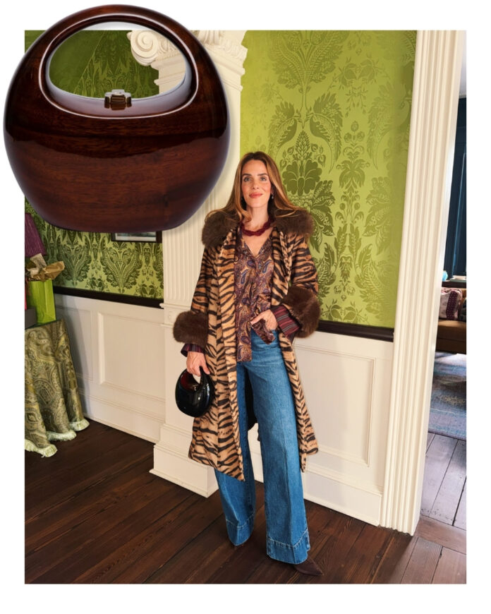 Kallmeyer Prime, Farm Rio Pants, JB x Jennifer Behr Necklace, Chanel Flats (related right here), Hermes Bag (on the RealReal right here, related right here) | Farm Rio Costume, Vest (related right here & right here), Aquazzura Boots (related right here), Bottega Veneta Bag (related right here)