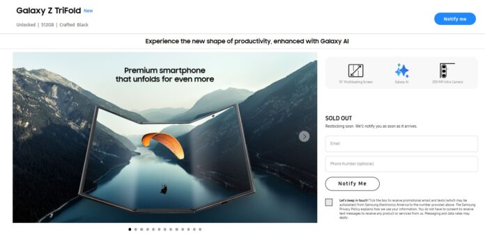 While you go to the Galaxy Z TriFold itemizing on Samsung’s web site proper now, you may be greeted by a “Notify me” button alongside a “Offered out” label sitting the place the purchase button needs to be.