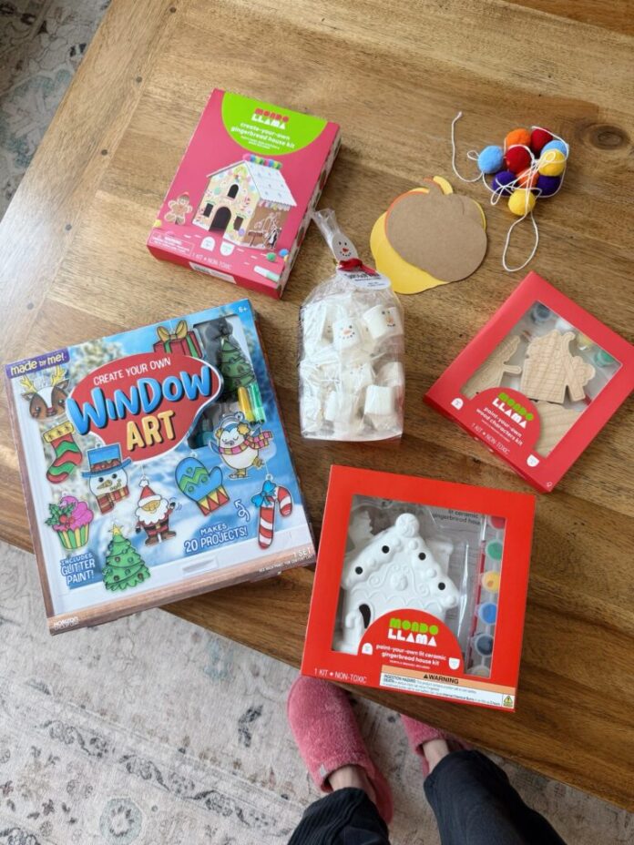 Crafts: Gratitude banner (everybody will write what they’re grateful for on a cut-out pumpkin and enhance it to show on Thanksgiving), light-up ceramic gingerbread home portray (I purchased 6 of those $5 crafts from Goal because the Halloween model was such a success in our home — I additionally grabbed these cardboard gingerbread homes to brighten as a result of they seemed cute and easy), this marshmallow snowman scorching chocolate topper that truly appears to be like do-able, beaded ornaments (this equipment has all the pieces included), Christmas window artwork (our children cherished making these as gift-toppers final yr so I ordered this equipment once more for our entire crew because it has 20 toppers!)