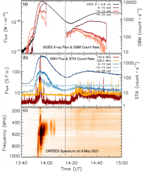- Lengthy-duration radio emission noticed throughout the post-impulsive part of the Could 9, 2021 occasion is related to HXR emission above 6 keV. The strongest radio emission happens at (or close to) the instances of the HXR peaks.