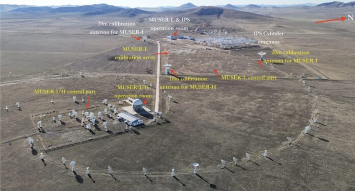 Determine 1. The panorama view of Mingantu Observing Station with MUSER‐H/I/L. arrays, calibration antennas.