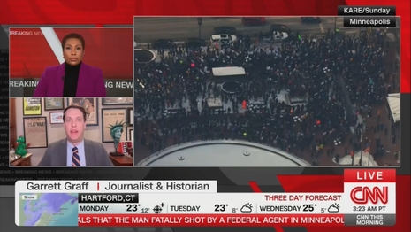 On Monday’s CNN This Morning, CNN Visitor and WIRED contributor Garrett Graff praised Minnesota protestors for supposedly being non-violent and stated viral movies solely confirmed federal regulation enforcement being violent. In actuality, many different movies have proven protesters being violent, together with a riot exterior a lodge the place federal regulation enforcement was staying on Sunday night time into Monday morning.