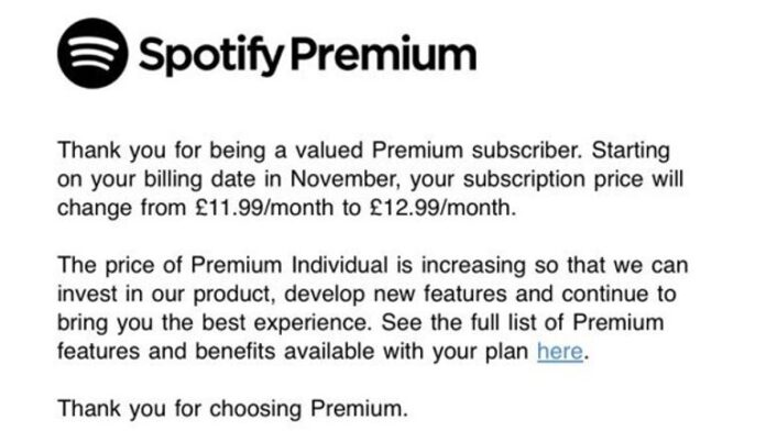 A press release on its web site says: “We’re updating our Premium costs to make sure we will proceed to innovate in altering market situations and ship the very best audio content material all over the world.