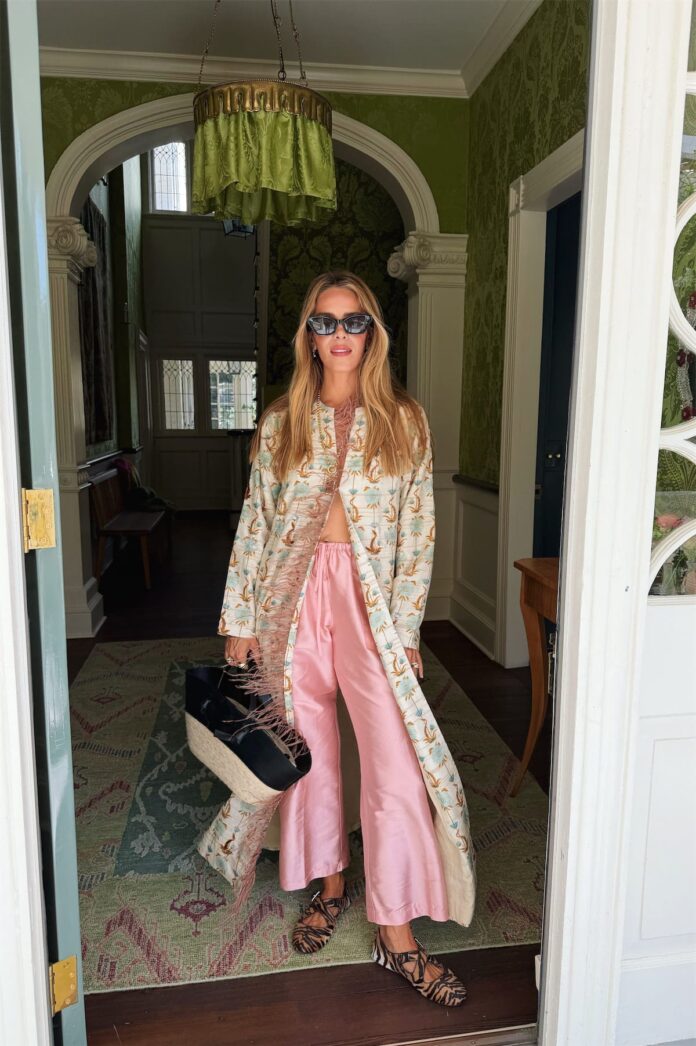 Chan Luu Jacket, Donni PantsAlaia FlatsAltuzarra ToteDior Sun shades, Sherman Area Necklace (out of inventory, related right here)