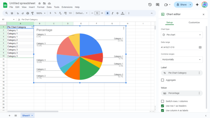 Then, on the menu bar over your spreadsheet, click on Insert > Chart. By default, a pie chart will likely be generated. The “Chart editor” panel will even open alongside the appropriate of the web page, so you’ll be able to change the pie chart to a different sort or make different changes to it.