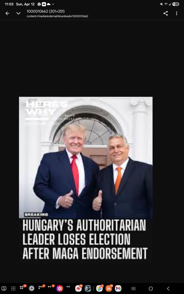 LET’S BE INSPIRED BY THE BRAVE PEOPLE OF HUNGARY WHO BANNED TOGETHER AND TOOK BACK THEIR DEMOCRACY FROM TRUMP’S AUTOCRATIC HERO, THE LANDSLIDE-DEFEATED VICTOR ORBAN.