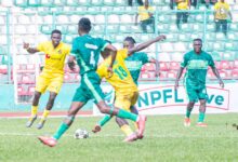 Elsewhere in Yenagoa, Bayelsa United and Ikorodu Metropolis settled for a 1–1 draw. Emo James had put Bayelsa forward within the twenty sixth minute earlier than Tosin equalised late on, scoring from a rebound after his penalty was saved.